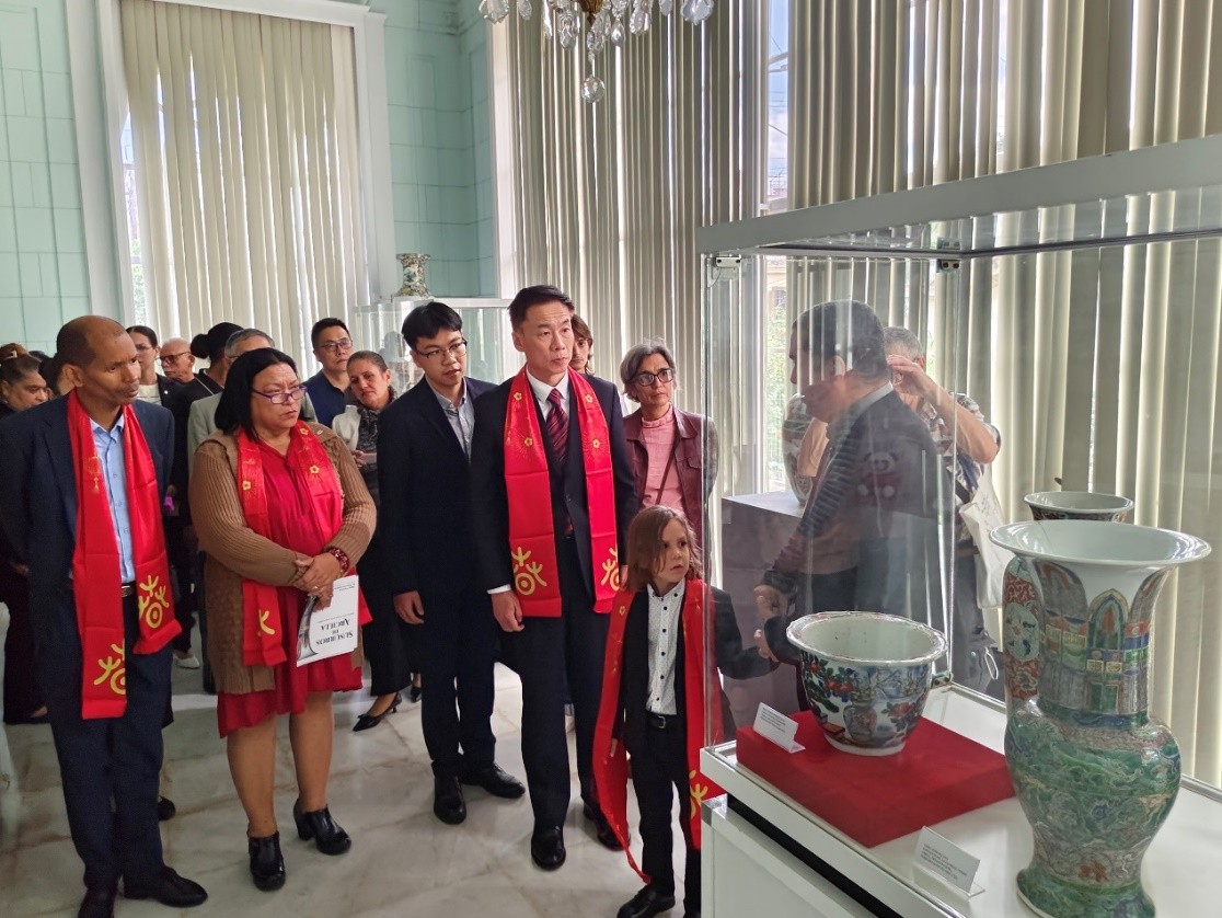 To celebrate the Chinese New Year, the special exhibition Happy Spring Festival: Celebrating Chinese New Year at the Museum opened on January 29 at the National Museum of Decorative Arts (MNAD) in Havana, Cuba. The event was jointly organised by the Embassy of the People’s Republic of China in Cuba and the MNAD. More than 100 guests attended the opening ceremony, including Sonia Virgen Pérez, president of Cuba’s National Council for Cultural Heritage; Yosvanis Fornaris, director of the MNAD; and Hua Xin, Chinese ambassador to the Republic of Cuba.