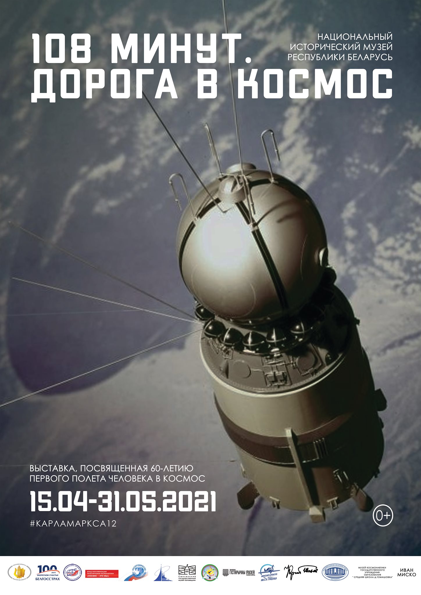 4月16日, “108分钟·太空之路” 展在白俄罗斯国家历史博物馆开展。该展览由该馆联合俄罗斯加加林纪念馆、斯摩棱斯克保护区博物馆和加加林宇航员培训中心等机构举办,以纪念人类首飞太空60周年。展览将持续至2021年5月3日。