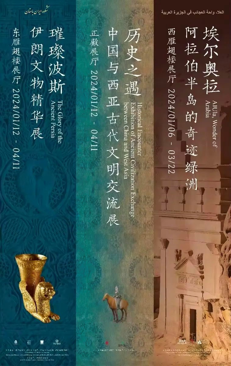 2024开年之际,故宫博物院联合伊朗国家博物馆,伊朗文化遗产、旅游和手工艺部,沙特阿拉伯埃尔奥拉皇家委员会等机构,共同推出“历史之遇——中国与西亚古代文明交流展”“璀璨波斯——伊朗文物精华展”和“埃尔奥拉——阿拉伯半岛的奇迹绿洲展”。